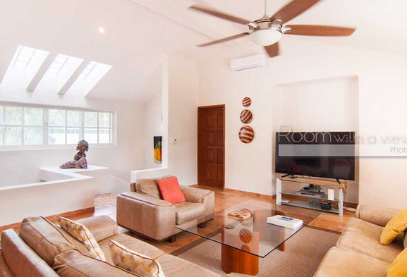 Esta hermosa villa de 2 pisos está ubicada en una calle tranquila sin tráfico y cuenta con techos abovedados y tragaluces que inundan los espaciosos interiores con el sol caribeño. Hay 4 dormitorios y 3,5 baños en la casa principal junto con una casita de invitados de 1 dormitorio y 1 baño, perfecta para visitas, familias o para alquiler. La suite principal es especialmente impresionante ya que ocupa todo el piso superior de la villa e incluye una amplia sala de estar, una oficina privada con un hermoso techo abovedado de ladrillo, un suntuoso baño con bañera elevada y un gran dormitorio principal con puertas que dan al patio. directamente a la amplia terraza superior. Una gran piscina invit
